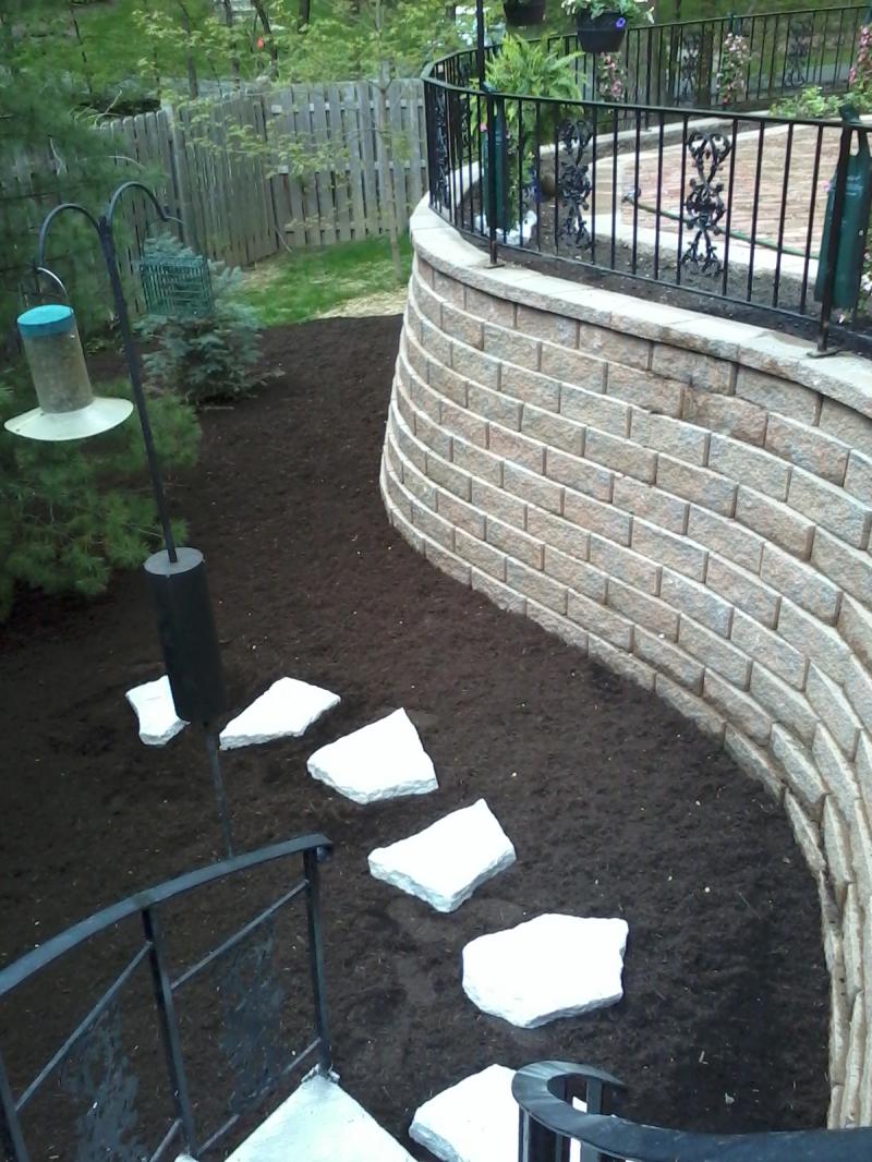 Finished wall with custom spiral staircase, and custom railing.