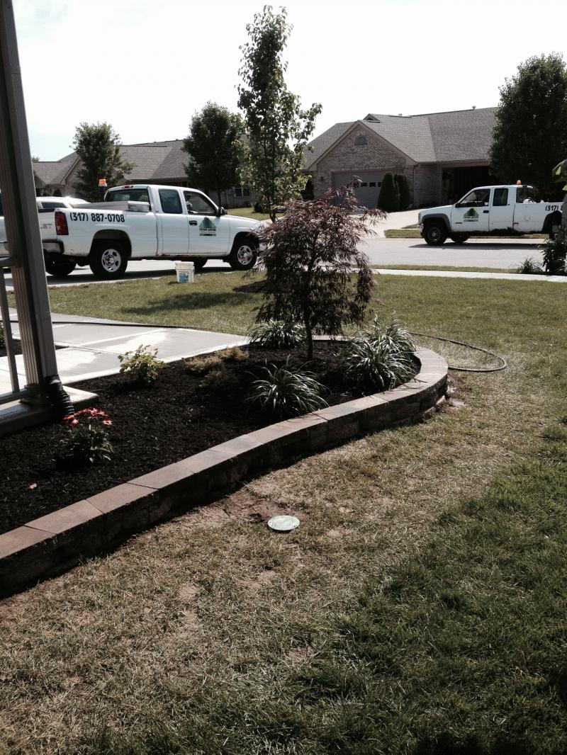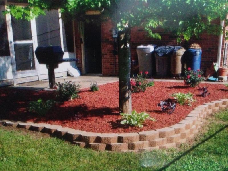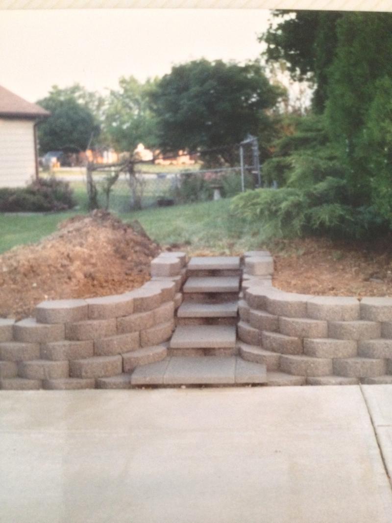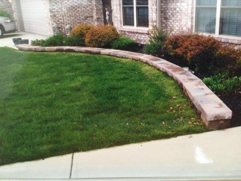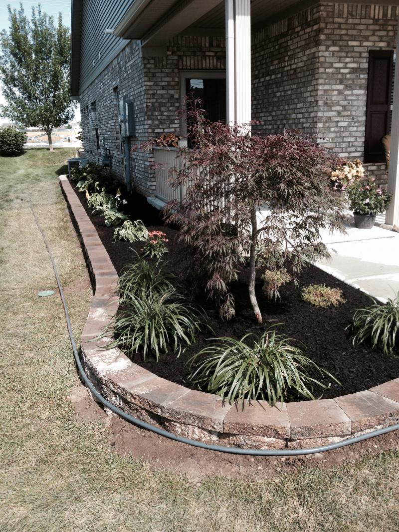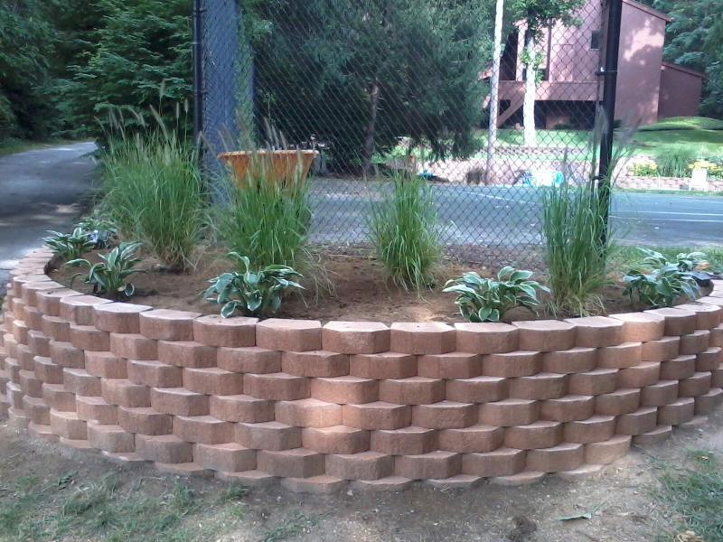 Percision cut capstones give this low cost stackable wall a finished high quality look. With low maintenance plants and died black mulch, it looks like you spent thousands, when only a fraction of that was actually spent!Rogers Diamond wall with capstones.